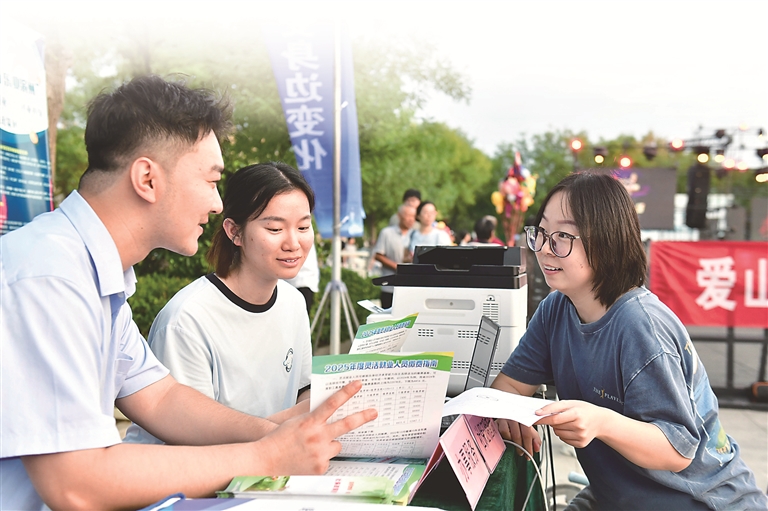 山东省滨州市结合文化汇演、惠民集市等场景,开展惠民政策宣讲进社区、进广场、进乡村。图为工作人员在惠民县孙武广场向市民作宣讲。新华社发