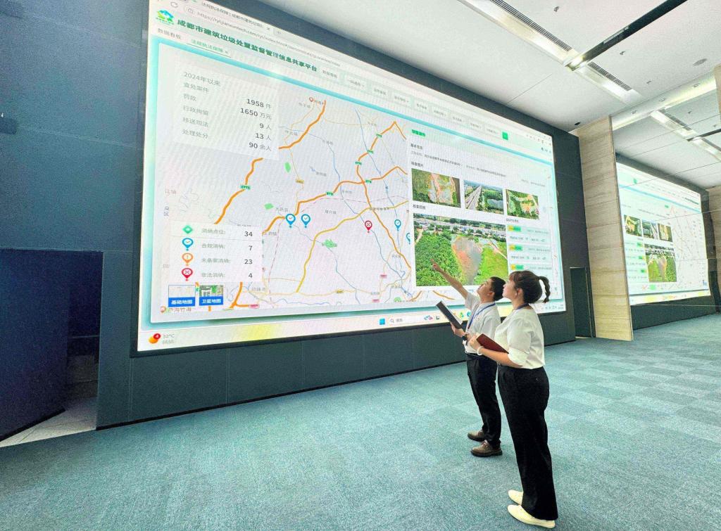 四川省成都市纪委监委聚焦民生领域突出问题开展系统整治,推动相关职能部门从制度层面巩固系统整治成果,不断增强系统整治综合效应。图为今年8月,成都交投资源循环利用有限公司纪检干部正在查看建筑垃圾处置监督管理信息共享平台运行情况。鲍强 摄