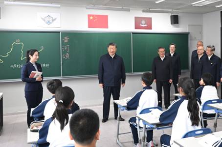 3月23日,中共中央总书记、国家主席、中央军委主席习近平在河北雄安新区考察,并主持召开深入推进雄安新区高质量建设和发展座谈会。这是23日上午,习近平在北京四中雄安校区考察时,同师生亲切交流。新华社记者 谢环驰 摄