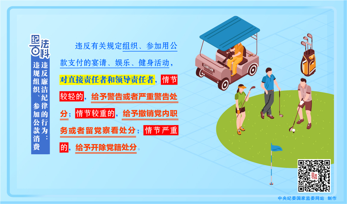 《中国共产党纪律处分条例》第一百一十三条规定,违反有关规定组织、参加用公款支付的宴请、娱乐、健身活动,对直接责任者和领导责任者,情节较轻的,给予警告或者严重警告处分;情节较重的,给予撤销党内职务或者留党察看处分;情节严重的,给予开除党籍处分。