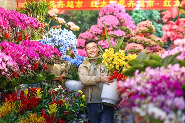 新年新气象,市民在甘肃省兰州市城关区芳草园花卉市场购买花卉,用心装点自己的生活。(甘肃省纪委监委供 侯崇慧 摄)