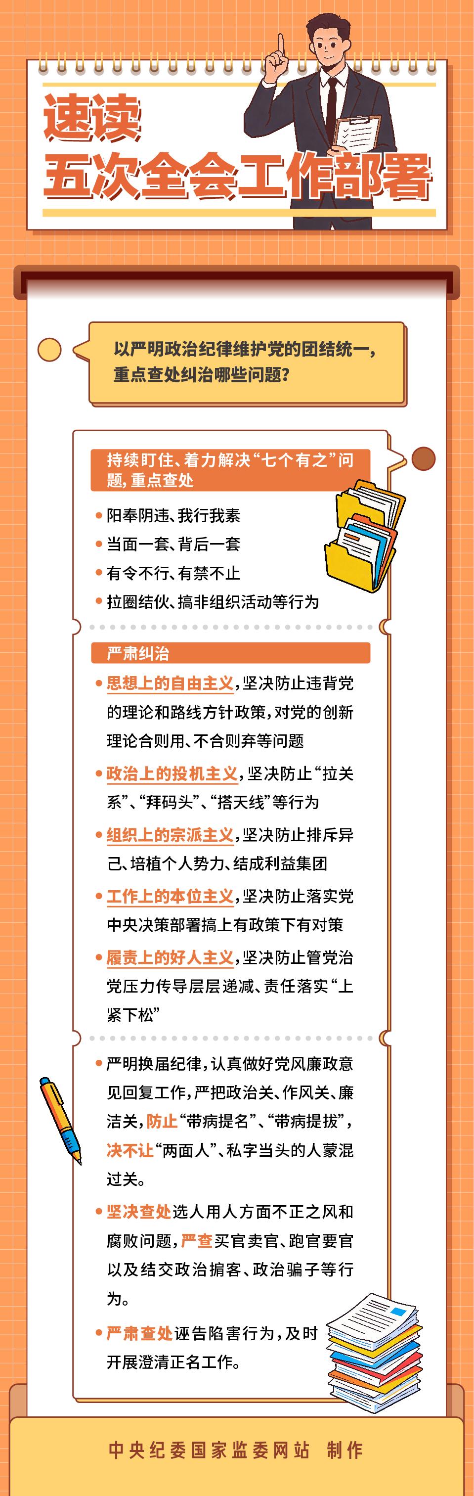 速读五次全会工作部署丨以严明政治纪律维护党的团结统一,重点查处纠治哪些问题