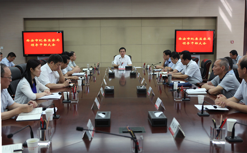 9月1日,市纪委监察局召开领导干部大会,宣布市委有关领导干部任免决定,赵晓林、李堪社、陈武、万青平4位新任职同志作了表态发言后,市委常委、市纪委书记杨鑫代表市纪委常委会,对新任职领导干部提出三点要求。