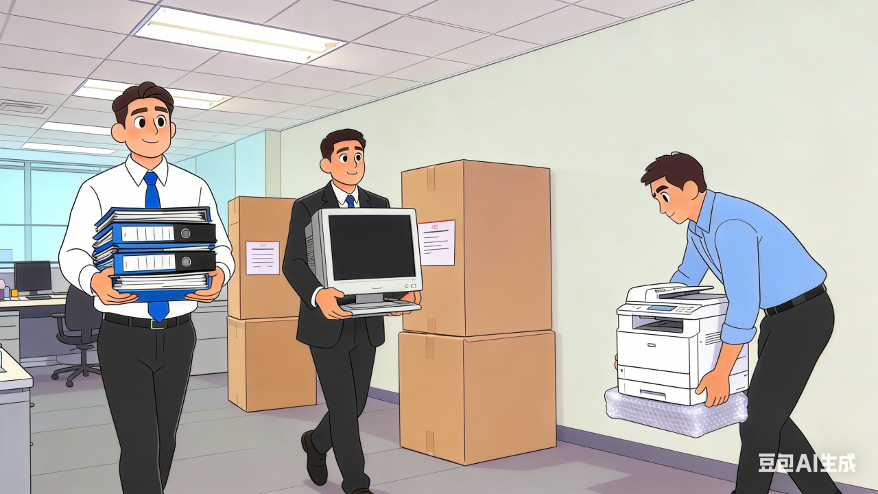 为尽快完成工作,谢小米喊了部门其他同事一起帮忙。小张和小孙负责文件柜及资料,小王负责文印设备……至于刚到单位还在见习期的小赵,谢小米安排他清理杂物间。
